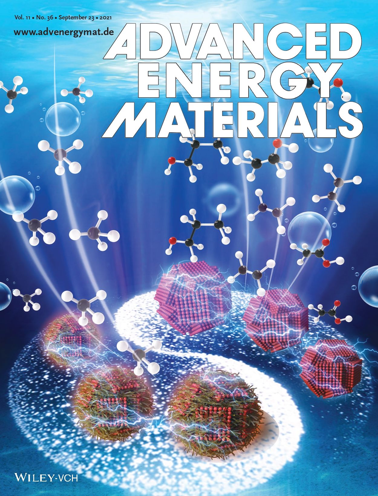 (11) Huo Hang, Wang Jin,* Fan Qikui, Hu Yanjing, Yang Jian.* Cu-MOFs derived porous Cu nanoribbons with strengthened electric field for selective CO2 electroreduction to C2+ fuels. Advanced Energy Materials, 2021, 11(42): 2102447-2102453.