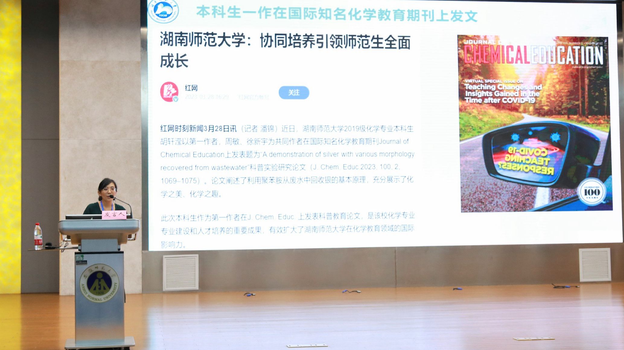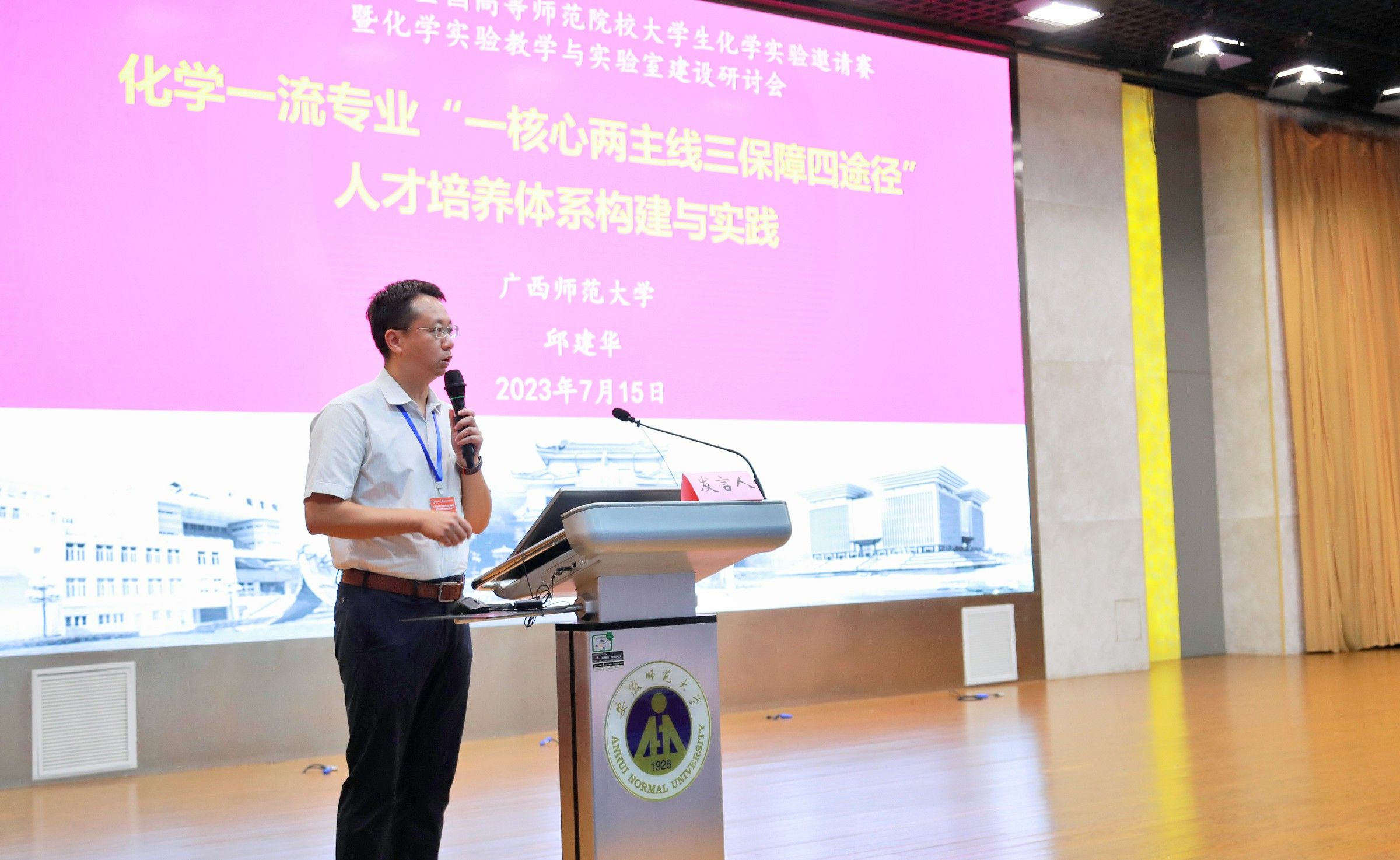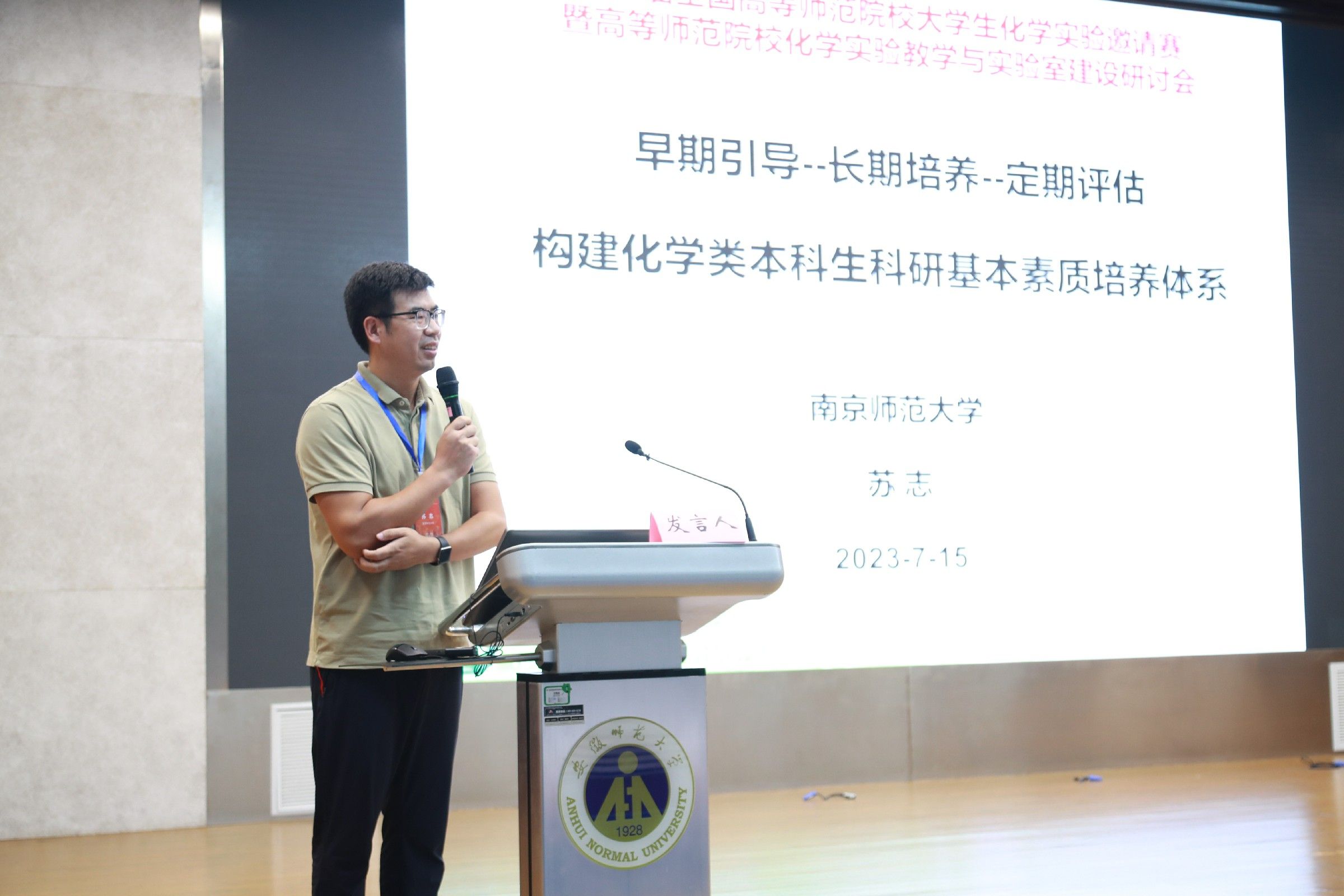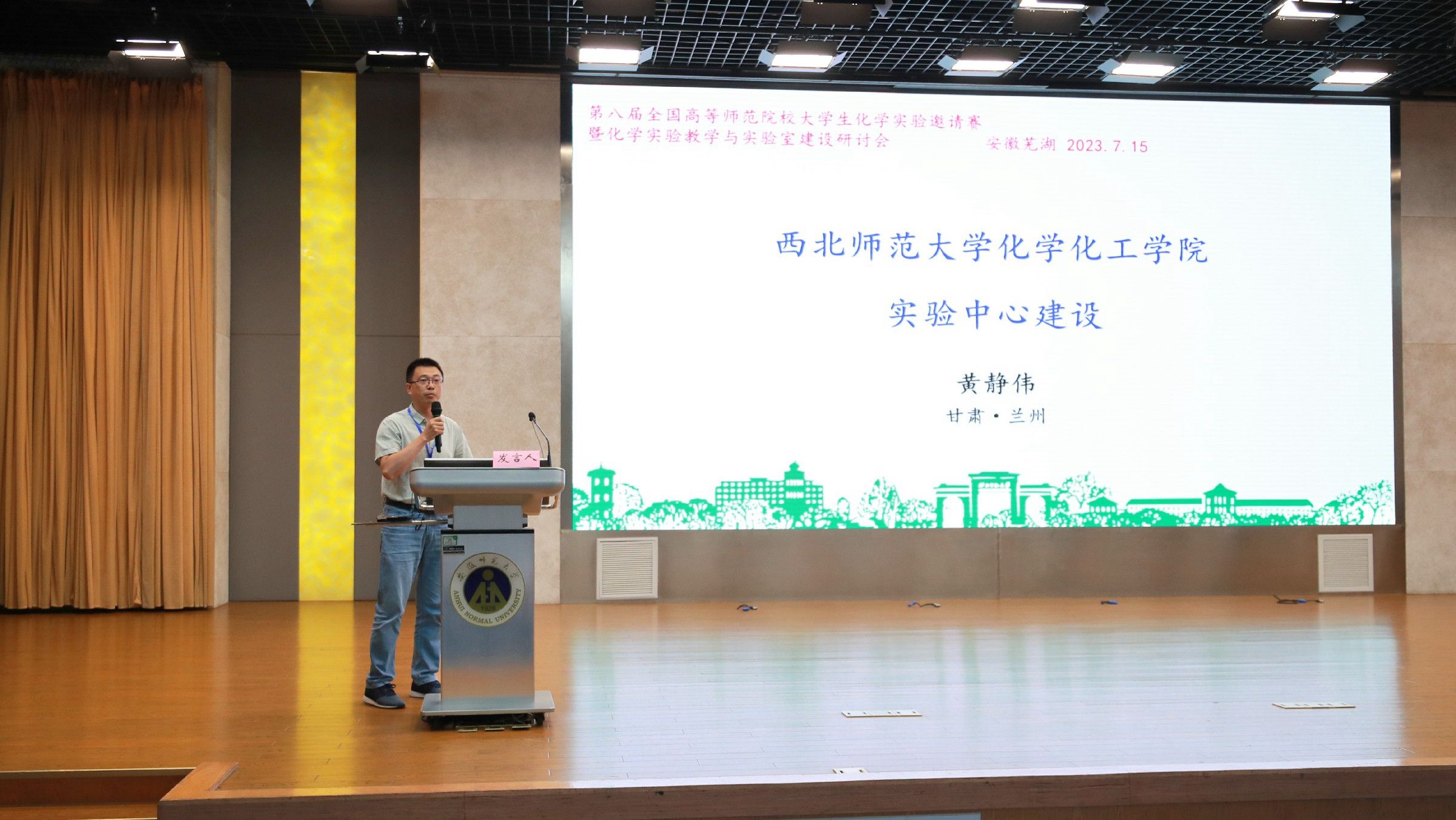 比赛期间,来自全国不同地区、师范院校的知名化学专家先后作了10余场精彩的专题报告,北京师范大学教授李运超做了题为《大学化学实验课程思政探索、实践及思考》的报告;华东师范大学教授王媛媛做了题为《化学一流专业建设举措与思考》的报告;南京师范大学教授苏志做了《早期引导 长期培养 定期评估——构建化学类本科生科研基本素质培养体系》的报告;湖南师范大学教授景一丹做了题为《创新引领 素养提升 情怀培育——湖南师大化学专业“银回收三人组”的成长》的报告;华中师范大学教授原弘做了题为《高等师范院校化学专业本科人才培养的探索与实践》的报告;陕西师范大学教授翟全国做了题为《专业—素质—能力有机融合的无机化学(含实验)课程教学改革与实践》的报告;广西师范大学教授邱建华做了题为《化学一流专业“一核心两主线三保障四途径”人才培养体系构建与实践》的报告;西北师范大学副教授黄静伟做了题为《西北师范大学化学化工学院实验中心建设》的报告;西南大学教授李念兵做了题为《多位一体、虚实协同、关注个性——化学类人才实践创新能力培养模式探索与实践》的报告;江西师范大学教授陶端健做了《以师范专业认证为抓手建设化学一流本科专业》的报告;浙江师范大学副教授宫培军做了题为《关于化学专业(化学+生物科学)复合型硕士层次高中教师培养的浙师实践与思考》的报告。专家们和现场师生就化学实验教学和实验室建设方面进行了深入探讨交流。